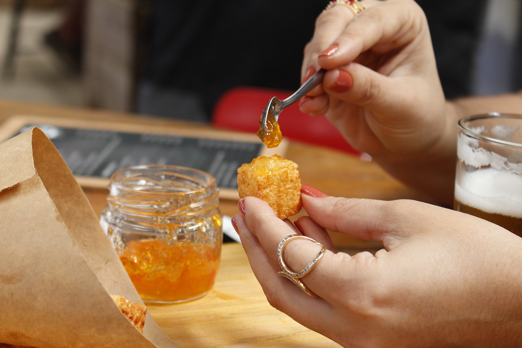 Malu aprovou a geleia de pimenta biquinho do chef Sinval, quis até comer o pote de colher sozinha